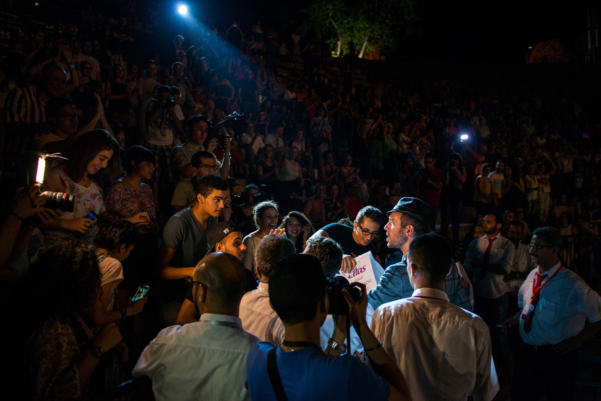 Sur scène, il a à nouveau exprimé son amour pour la Tunisie et a partagé son expérience dans notre pays avec le public présent tout en remerciant le Festival International de Carthage qui lui a donné la chance d’être présent parmi nous.