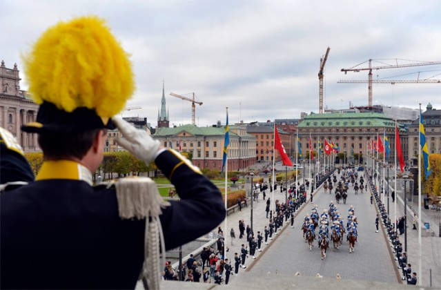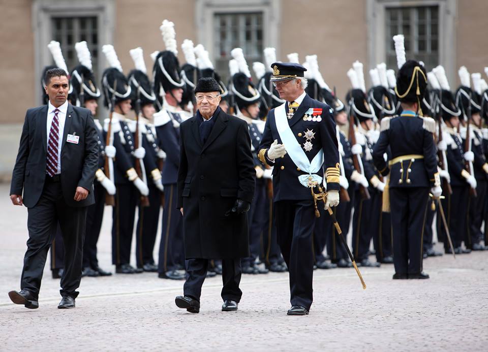 La capitale Stockholm était pavoisée de drapeaux tunisiens. Dans la Cour royale, le gouvernement suédois au complet a pris place pour saluer le président tunisien et la délégation qui l’accompagne, alors qu’un détachement royal rendait les honneurs.