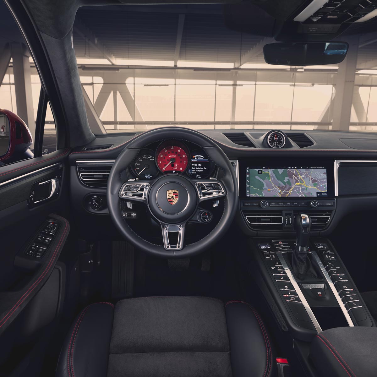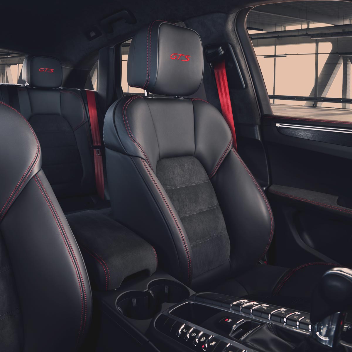 Le caractère sportif et élégant du Macan GTS se révèle également dans l’habitacle avec les matériaux de qualité comme l’aluminium brossé et l’Alcantara®, qui garnit les bandes centrales des sièges, l’accoudoir de la console centrale et les panneaux de porte. Le volant sport multifonction avec couronne en cuir lisse et palettes de changement de rapport est fourni de série, tout comme les sièges sport spécifiques à la version GTS, qui sont dotés de 8 positions de réglage et de bandes latérales renforcées pour un maintien latéral optimal dans les virages à vitesse élevée. Le nouveau Macan GTS offre de nombreuses options de personnalisation : l’intérieur cuir GTS en Rouge Carmin ou Craie avec éléments supplémentaires en Alcantara® et accents en couleur de contraste, le système audio BOSE® Surround ou encore le nouveau logement pour smartphone avec fonction de charge inductive.