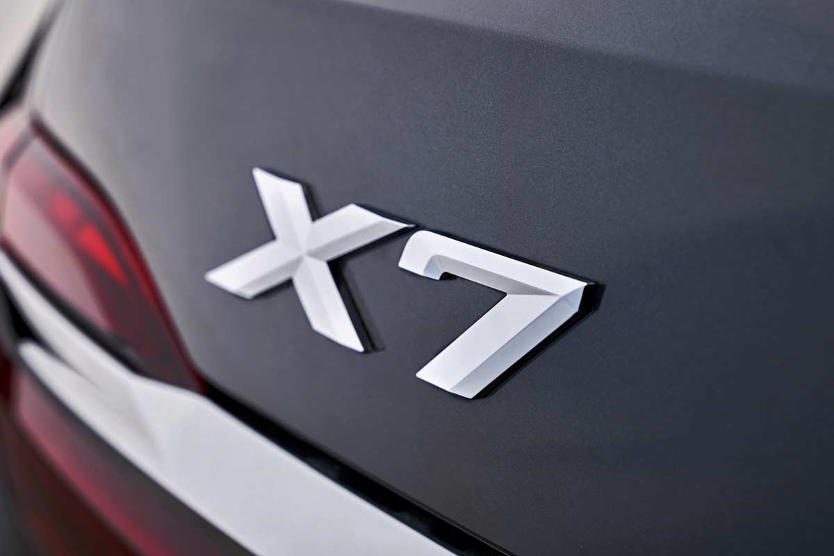 Un design précis pour un style luxueux et moderne au caractère affirmé. Avec ses 5 151 mm de long, ses 2 000 mm de large, ses 1 805 mm de haut et son empattement de 3 105 mm, la BMW X7 séduit par ses proportions harmonieuses et s’impose d’ores et déjà comme le nouveau modèle phare de la gamme BMW X. Caractérisé par ses lignes précises et ses surfaces généreuses, le nouveau langage de conception mis à l’oeuvre sur le SAV souligne le caractère conquérant du nouveau modèle. La proue particulièrement affirmée est dotée d’une double calandre BMW de grande taille et donne à la X7 une présence exceptionnelle. La BMW X7 est équipée du Pack Advanced Full LED, et peut également être équipée en option des phares BMW Laser, qui se distinguent par leur portée de 600 m en feux de route et par leurs éléments bleus en forme de x à l’intérieur des optiques. Vu de côté, le SAV se distingue par ses grandes fenêtres, sa garde au sol particulièrement haute et sa ligne de toit allongée. À l’arrière, les lignes horizontales, les feux à LED effilés et le hayon en deux sections apportent une note de modernité au nouveau modèle. Les nombreuses touches de chrome contribuent également à donner à la BMW X7 son caractère luxueux et élégant. Le SAV est équipé de série de jantes 20 pouces en alliage léger. Des variantes de 21 pouces et 22 pouces sont disponibles en option.