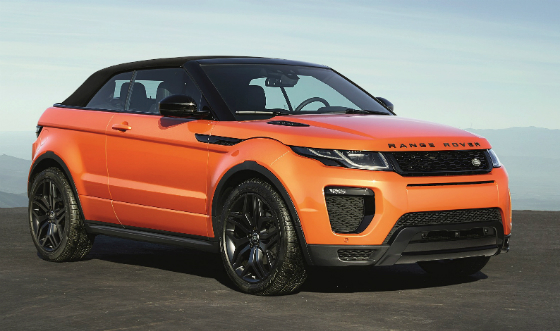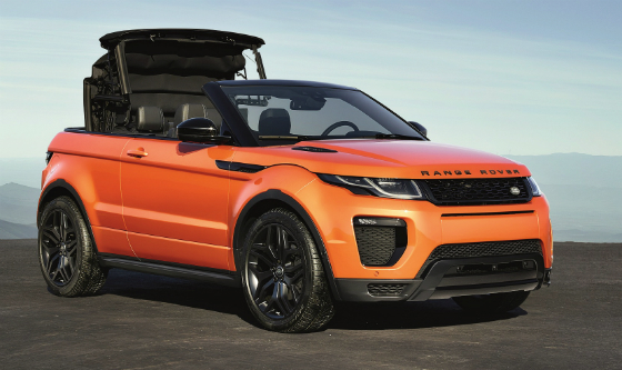 En 2015, le constructeur anglais poursuit sa collaboration avec l’agent du MI6 mais pense aussi au commun des mortels. Land Rover présente donc son SUV 4×4 dans une version découvrable que l’on découvrait en mars 2015 au salon de Genève, alors à l’état de concept-car. Le concurrent des Audi Q3 et BMW X1 se déshabille en 18 secondes jusqu’ 50 km/h, embarque une motorisation à 4 cylindres de 150 à 180 chevaux en diesel et un bloc essence unique de 240 chevaux. Présenté avec une robe orange, l’Evoque décapotable apparaît haut sur patte et très élégant avec ou sans couvre-chef. Le digne héritier du Freelander II est bel et bien né