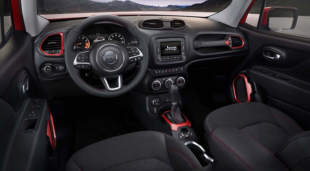 Avec son habitacle spacieux et silencieux, la Renegade permet à 5 passagers de s’installer dans des sièges rehaussés, confortables et ergonomiques. Elle se caractérise par des capacités de rangements uniques avec un grand coffre fonctionnel de 351 litres suffisant pour les besoins d’une aventure tout-terrain entre amis ou en famille. Elle est pratiquement conçue dans l’esprit de la récente Jeep Cherokee en se basant sur la rigueur de ses lignes.