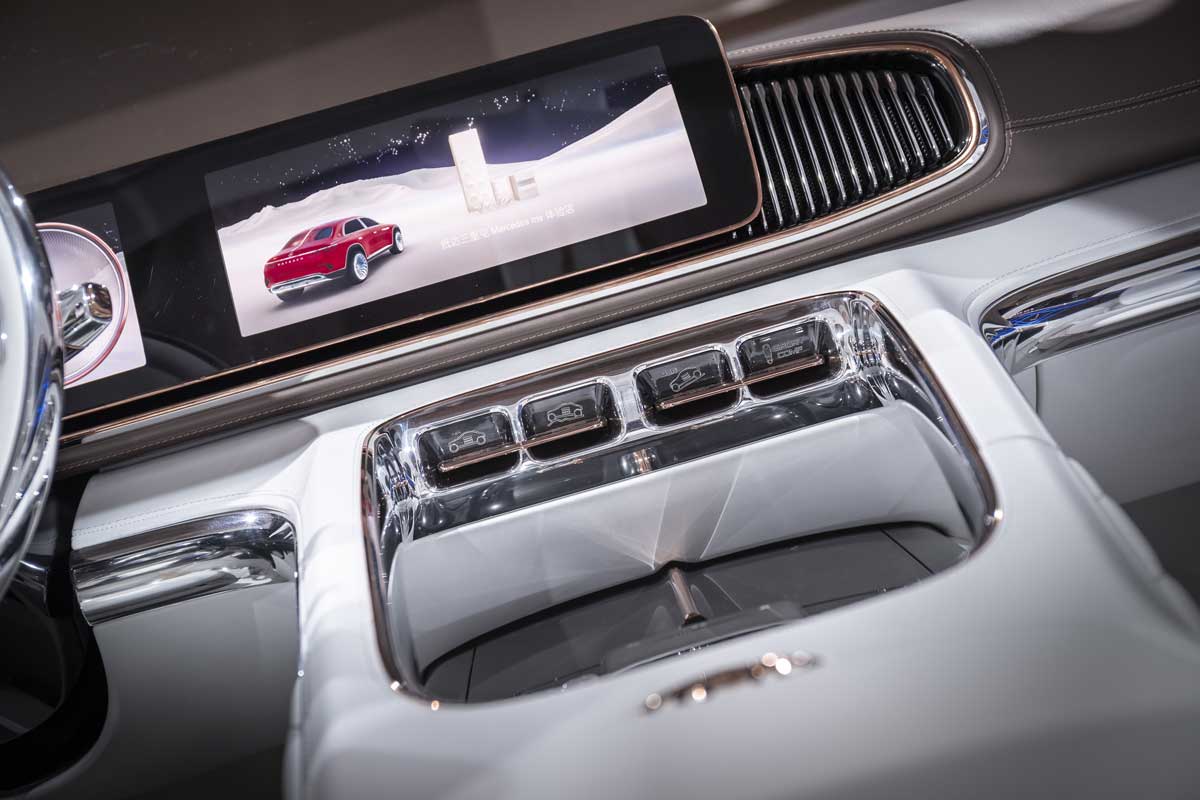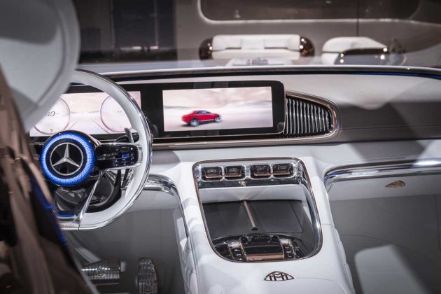L’expérience utilisateur offerte par Mercedes-Benz est digne d’une voiture de rêve du plus grand luxe. Le style est à la fois plus clair et plus chaleureux et crée une atmosphère fastueuse. La voiture a été entièrement conçue dans un environnement graphique 3D et en temps réel. La Vision Mercedes-Maybach Ultimate Luxury se montre aussi prévenante qu’un majordome et évite de proposer des menus et des listes interminables. Le véhicule diffuse la musique qui correspond à l’ambiance du moment, connaît l’agenda et les rendez-vous et planifie les itinéraires en en tenant compte. A l’arrière, différentes sortes de thés et divers programmes de relaxation peuvent être proposés en fonction des passagers.