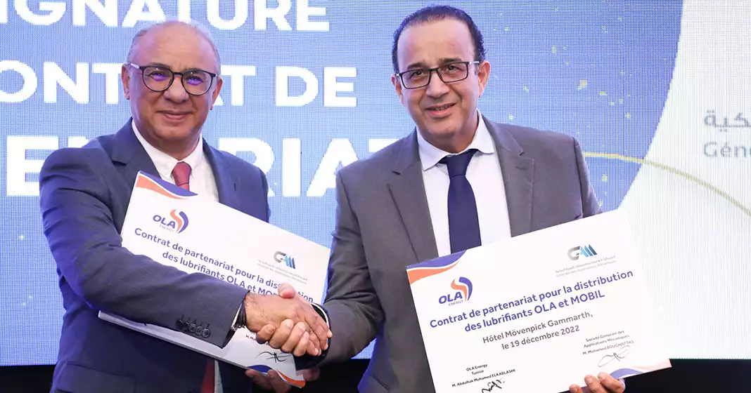 OLA Energy Tunisie et la Générale des Applications Mécaniques (GAM), filiale du groupe Ulysse Trading and Industrial Companies (UTIC) ont signé récemment un contrat de partenariat pour la distribution des lubrifiants des marques OLA Energy et Mobil dans les régions du Grand Tunis, Bizerte et Nord-Ouest.