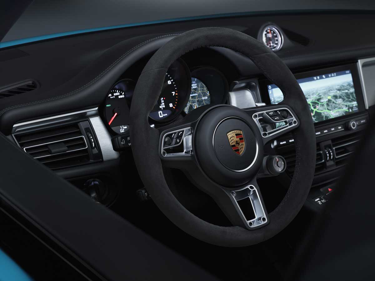 Le volant sport GT du nouveau Macan, proposé en option, marque la parenté du SUV compact avec la Porsche 911. Avec le pack Sport Chrono optionnel, le volant intègre le sélecteur de mode avec son bouton Sport Response. De nouvelles options contribuent à accroître le confort du conducteur et des passagers, notamment le pare-brise chauffant ou encore l’ioniseur d’air, pour une meilleure qualité de l’air dans l’habitacle. Enfin, le Macan bénéficie d’une offre de personnalisation élargie grâce à un éventail étendu de packs intérieurs, mais aussi aux nouvelles teintes « Bleu Miami », « Vert Mamba métallisé », « Argent Dolomite métallisé » et « Craie ».