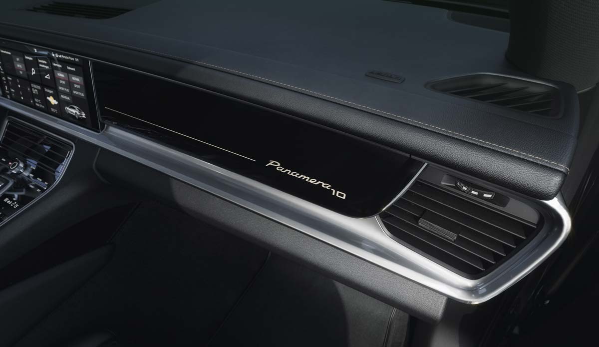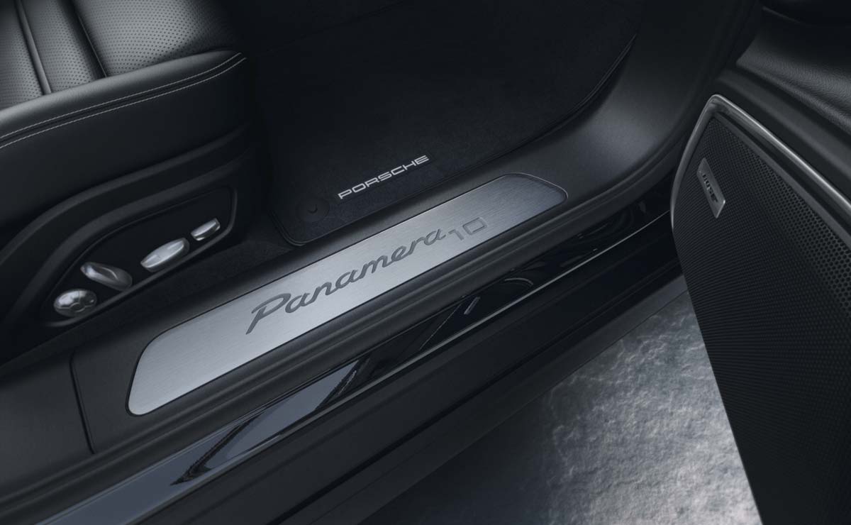 Les modèles Panamera Édition 10 Ans sont dotés de série d’une sélection élargie d’équipements et de fonctions de confort et de sécurité, comprenant notamment les phares à LED matriciels avec PDLS Plus, l’assistant de changement de voie et l’alerte de franchissement de ligne, mais aussi l’assistance parking avec caméra de recul, le toit panoramique, le vitrage teinté, les sièges confort chauffant à 14 réglages avec écusson Porsche sur les appuie-tête, les portes à fermeture amortie (soft close) et le système audio BOSE® Surround Sound.
