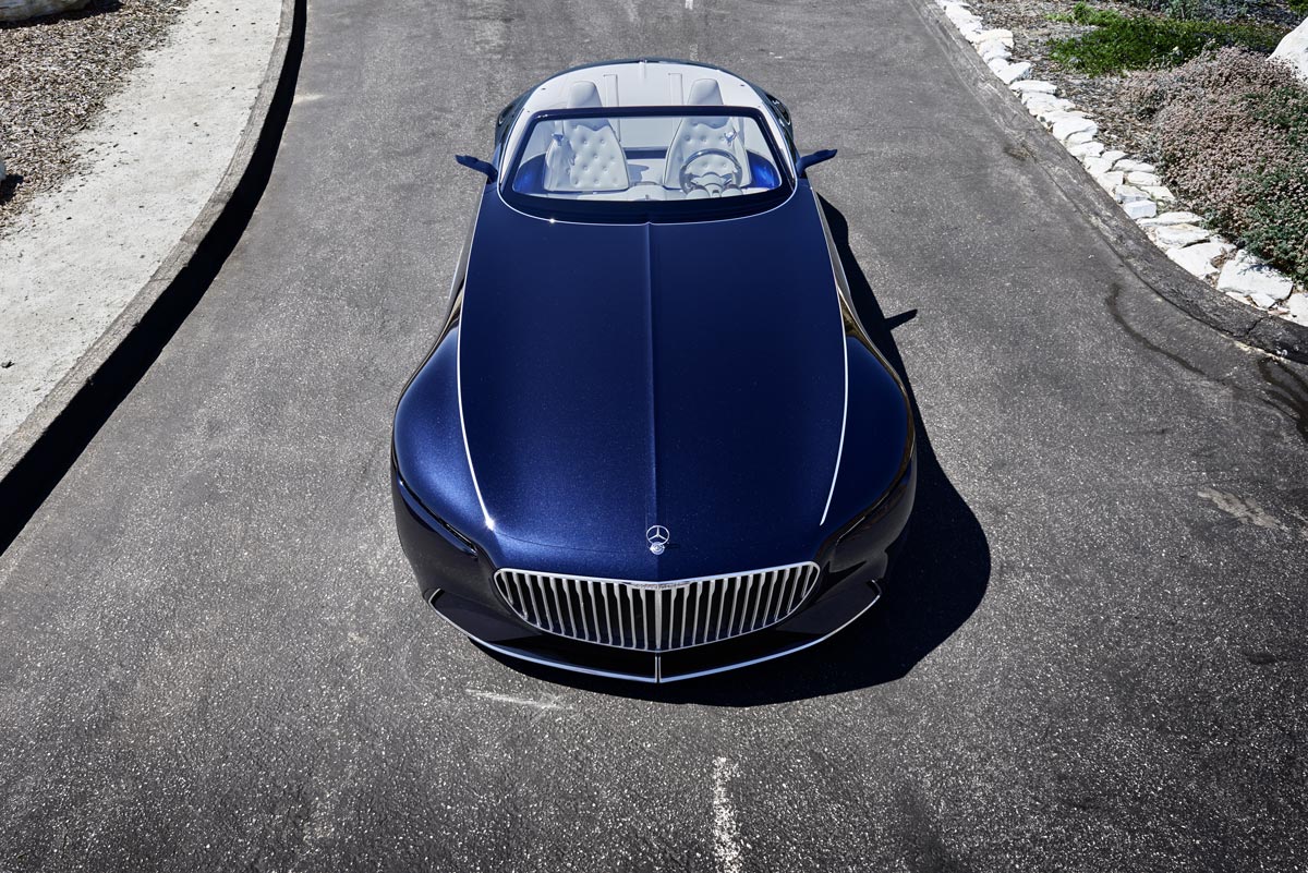 Avec ses dimensions généreuses, la Vision Mercedes-Maybach 6 Cabriolet (longueur/largeur/hauteur : 5 700/2 100/1 340 millimètres) poursuit la série des show cars visionnaires de Mercedes-Benz, parmi lesquels on compte pour l’instant la Vision EnerG-Force (Los Angeles, novembre 2012), l’AMG Vision Gran Turismo (Sunnyvale, 2013), la Vision Tokyo (Tokyo, 2015) et la Vision Mercedes-Maybach 6 Coupé (Pebble Beach 2016). Grâce au design Mercedes-Benz international, ces concept cars s’inspirent des tendances locales en matière de design, de culture et de mobilité et les placent au centre des concepts de mobilité. Parallèlement, ces show cars sont tournés vers un avenir lointain.