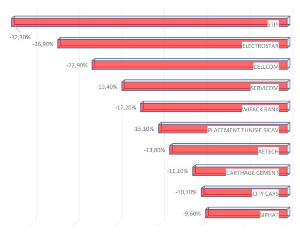 Les plus fortes baisses de revenus ont touché la STIP avec une baisse de (-32,3%), suivie par ELECTROSTAR avec une baisse de (-26,9%) et la société Cellcom dont le chiffre d’affaires a reculé de 22,9%.