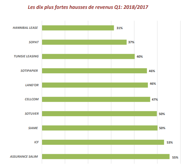Les plus fortes hausses de revenus ont été réalisées par ASSURANCE SALIM (+55,3%), ICF(+52,9%), SIAME (+50,1%) et SOTUVER (+49,8%).