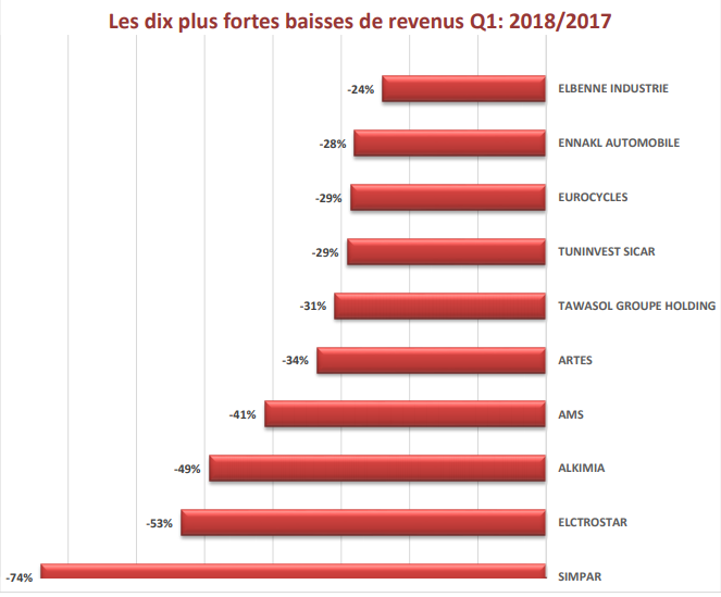En revanche, les plus fortes baisses de revenus ont été enregistrées par SIMPAR (-73,9%), ELECTROSTAR (-53,4%) et ALKIMLIA (-49,3%).
