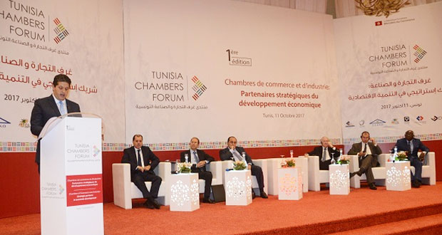 Sous le Haut patronage de Monsieur Youssef Chahed , Président du Gouvernement Tunisien, les Chambres de Commerce et d’Industrie Tunisiennes organisent, en coopération avec le Ministère de l’Industrie et du Commerce, le premier forum des chambres, le 11 Octobre 2017 à l’hôtel Carthage Thalasso à Gammarth.