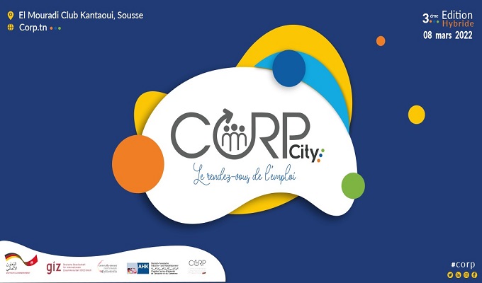 La Chambre Tuniso-Allemande de l’Industrie et du Commerce ( AHK Tunisie ) Via son département CORP annonce l’organisation de la 3ème édition du CORP CITY , le salon de l’emploi inversé qui se déroulera le 8 mars 2022 en mode Hybride : à El Mouradi Club Kantaoui, Sousse, et en ligne sur “CORP Event Platform”.