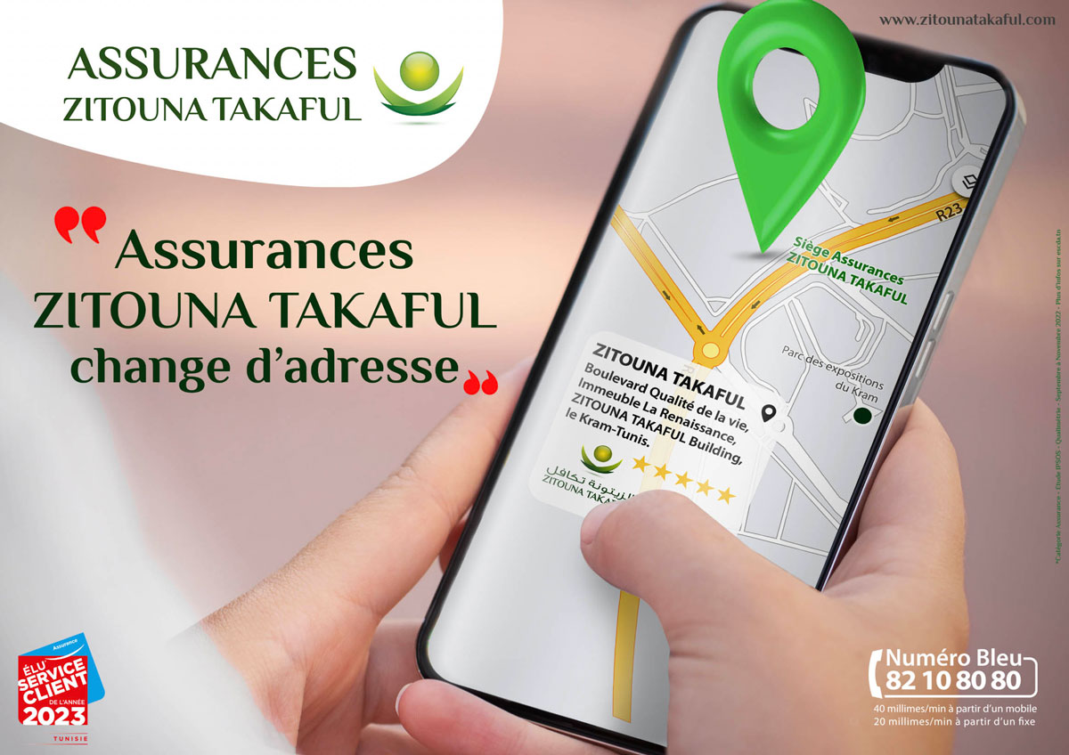 Assurances ZITOUNA TAKAFUL attend ses clients à compter du 22 mai 2023 dans ses nouveaux locaux…