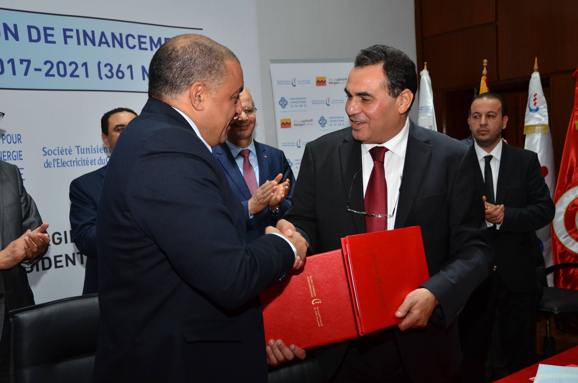 Attijari bank et la Société Tunisienne de l’Electricité et du Gaz « STEG » signent une convention de financement du programme Prosol 2017-2021 pour un montant de 361 millions de dinars, le 07 Novembre 2017 au siège de la STEG, Sous l’égide du Ministère de l’Energie, des Mines et des Energies Renouvelables et l’Agence Nationale de la Maîtrise de l’Energie (ANME)Egner