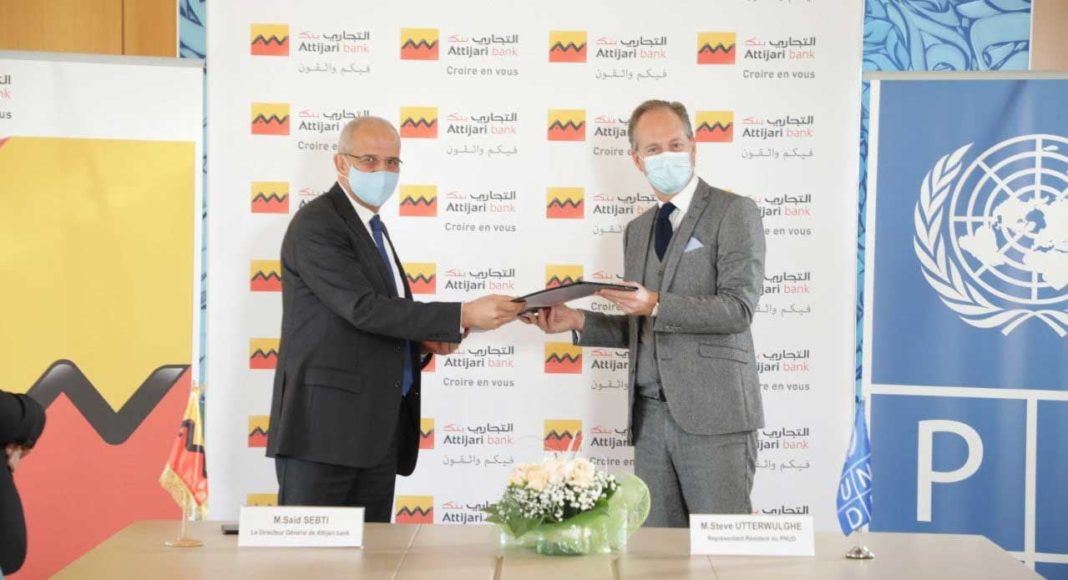 M. Saïd Sebti, Directeur Général d’Attijari bank Tunisie et M. Steve Utterwulghe, Représentant Résident du Programme des Nations Unies pour le Développement (PNUD) en Tunisie ont signé ce Vendredi 4 Décembre 2020 un Protocole d’Entente pour la mise en œuvre d´une stratégie intégrée d’appui au développement local inclusif et à l´écosystème entrepreneurial par l´engagement du secteur privé et l´intégration des Objectifs de Développement Durable (ODD) en Tunisie.