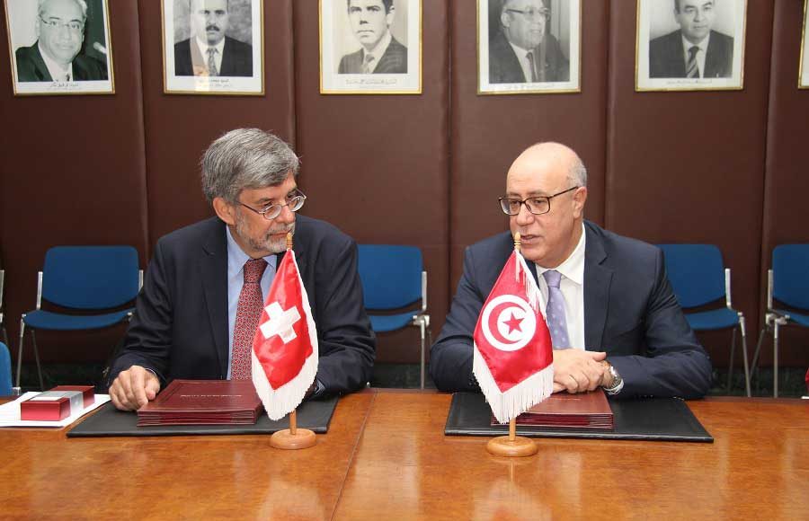 Dans le cadre du renforcement de la coopération internationale, M. Marouane El Abassi Gouverneur de la Banque Centrale de Tunisie (BCT) et Son Excellence M. Etienne Thévoz, Ambassadeur de Suisse en Tunisie, ont signé le 8 Mai 2019 à Tunis, une convention de coopération couvrant la deuxième phase du programme d’assistance technique BCC (Bilateral Assistance and Capacity Buidings for Central Banks) appuyé par le Secrétariat d’Etat à l’Economie Suisse.