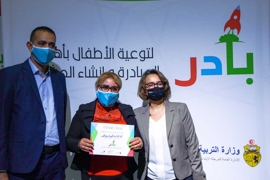 A la fin de la session de formation des formateurs, M. Lotfi Boulaaba, Sous-Directeur des activités culturelles, artistiques, sportives et sociales au Ministère de l’éducation et chargé par la Directrice Générale du cycle primaire de suivre la mise en place du programme « Béder » a exprimé sa grande satisfaction quant au déroulement de cette étape importante du lancement du programme : « nous sommes très optimistes par rapport au déploiement de « Béder » dans les écoles que nous avons identifiées sur tous les gouvernorats et qui s’intègre parfaitement dans l’animation de la vie scolaire. L’engagement des instituteurs et le support des différents partenaires constituent les facteurs clés du succès de ce nouveau programme qui accompagnera nos enfants dans leur exploration du monde de l’entrepreneuriat. »