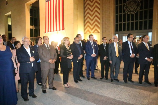 Le 4 juillet est la fête nationale des États-Unis depuis que les pères fondateurs du pays ont signé la Déclaration d’indépendance le 4 juillet 1776. Les Américains célèbrent la fête de l’Indépendance en organisant des défilés, des feux d’artifice, des concerts et d’autres activités divertissantes. A l’occasion de cette fête nationale, une réception a eu lieu jeudi 2 juillet 2015, à l’ambassade des Etats-Unis à Tunis. L’ambassadeur américain, Jacob Walles, qui part dans les prochains jours, a réitéré le soutien de son pays à la démocratie tunisienne naissante en présence de plusieurs personnalités politiques tunisiennes :Habib Essid, le président de l’ARP, Mohamed Ennaceur, le ministre des Affaires étrangères, Taieb Baccouche, le ministre de la Santé, Said Aidi, le ministre des Finances, Slim Chaker, la ministre de la Femme, Samira Merai, le ministre de l’Emploi et de la Formation professionnelle, Zied Laâdheri, le ministre des Technologies de l’information et de l’Economie numérique, Noômen Fehri ainsi que les deux anciens chefs du gouvernement, Mehdi Jomâa et Ali Laârayedh