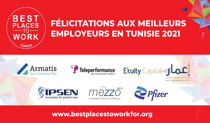 Les lauréats du programme « Best Places To Work in Tunisia 2021 » sont désormais connus !! Ce programme international de certification des entreprises est organisé depuis 6 ans en Tunisie et Il vise à rendre hommage aux entreprises qui se distinguent par la qualité des politiques et des pratiques RH déployées au sein de leurs organisations. Malgré le contexte mondial difficile marqué par la pandémie du Covid 19, ces résultats illustrent les diverses actions engagées par plusieurs employeurs en Tunisie pour retenir et fidéliser leurs collaborateurs et les accompagner dans leur développement professionnel tout en assurant la préservation de leur santé.