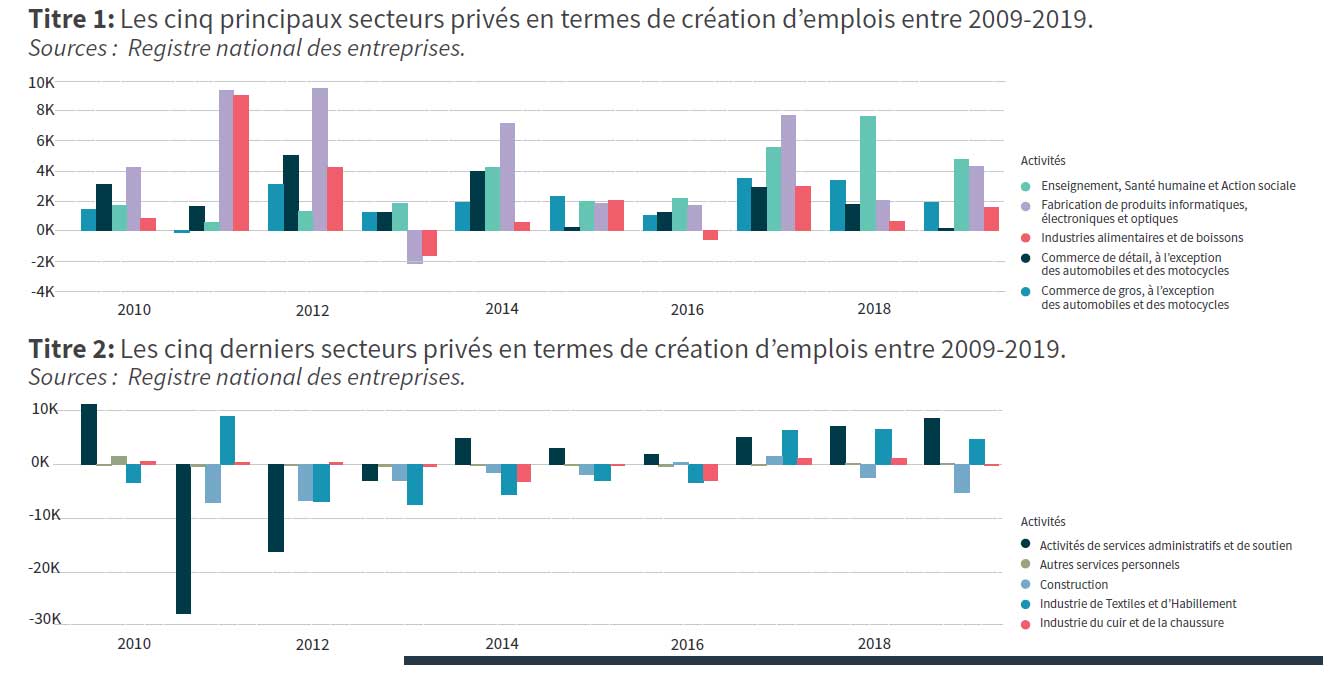 L’augmentation de la part des activités professionnelles telles que l’éducation, la santé et les actions sociales, classées dans les cinq premiers secteurs avec plus de 32 milles nouveaux emplois est due au fait de la hausse des inscriptions dans les écoles privées, l’accès aux soins de santé privés et le nombre croissant des activités d›action sociale.