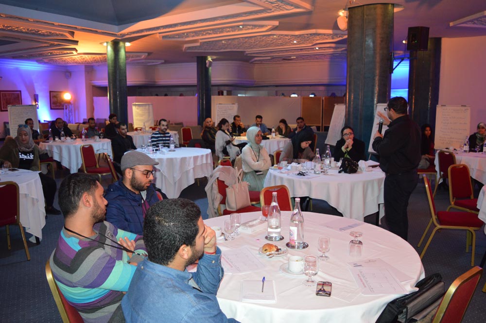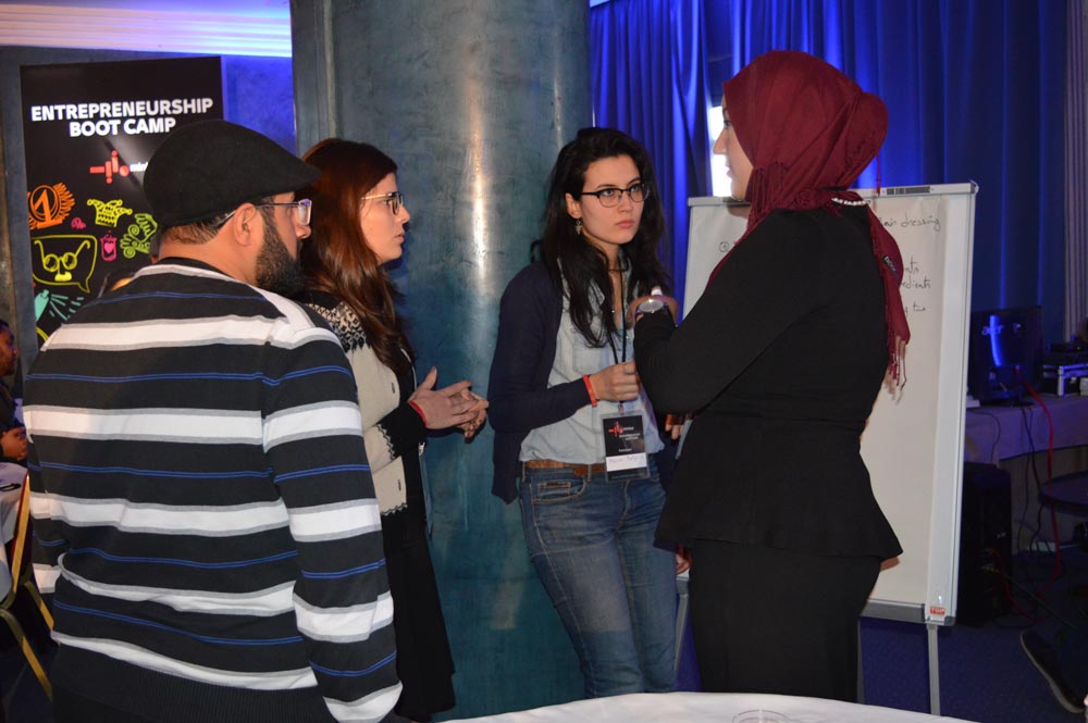 Durant cet événement, les jeunes participants ont bénéficié d’une session de formation intensive de 3 jours destinée à développer leurs compétences entrepreneuriales sur les techniques d’idéation, le Business Modelling, l’analyse de marché et les méthodologies de Lean StartUp. Ces formations leur ont été délivrées par des coachs internationaux (collaborant avec « 500 Startups » et « Tech Wadi », et avec des entreprises de la SiliconValley telles que Google, DropBox et InSense) et des coachs locaux, collaborateurs de Enda inter-arabe.