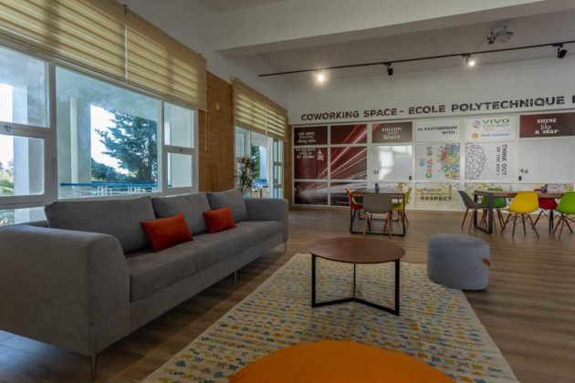 Le coworking space de l’école Polytechnique s’étend sur une superficie totale de 100 m2 et est aménagé de façon ergonomique afin de procurer aux étudiants une ambiance de travail confortable et une expérience collaborative à grande valeur ajoutée. Cet espace pourrait également abriter des évènements organisés par l’Ecole Polytechnique et impliquant aussi bien ses élèves ingénieurs que des étudiants d’autres institutions universitaires.