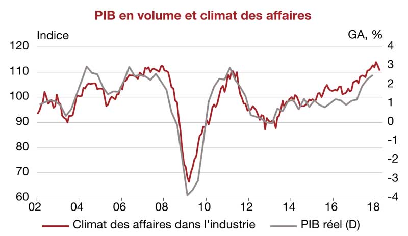 L’élan conjoncturel demeure fort. Le PIB a accéléré au T4-17 (0,7 % T/T), porté par l’investissement et la bonne tenue des exportations. Début 2018, les enquêtes de confiance des entreprises comme des ménages se maintiennent à des niveaux élevés.