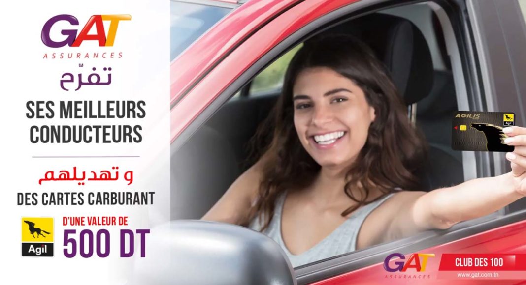 Toujours innovante et socialement responsable par ses actions en faveur de la Prévention Routière, GAT ASSURANCES, partenaire officielle de l’Association Tunisienne de la Prévention Routière, lance sa deuxième opération gratifiante pour les « 100 meilleurs conducteurs » en leur octroyant à chacun une carte carburant AGIL, d’une valeur de 500 DT.