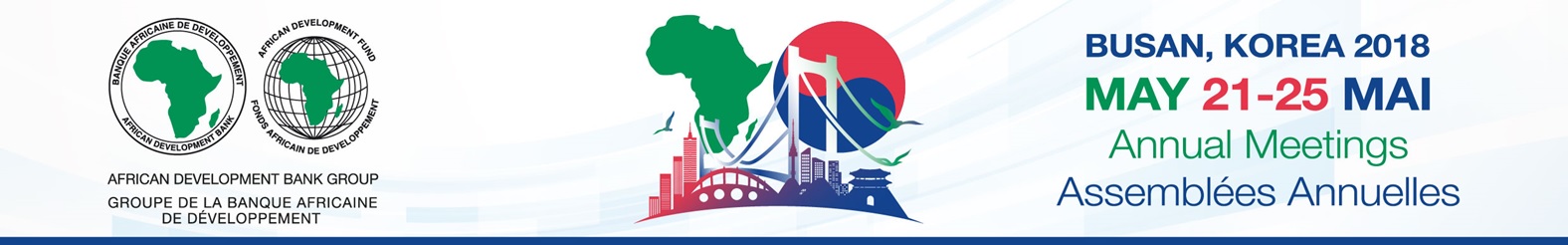 La 53e Assemblée annuelle du conseil des gouverneurs de la Banque africaine de développement et la 44e Assemblée du conseil des gouverneurs du Fonds africain de développement (AfDB.org/fr/annual-meetings-2018), guichet concessionnel du Groupe de la Banque, se dérouleront du 21 au 25 mai 2018 à Busan, en Corée.