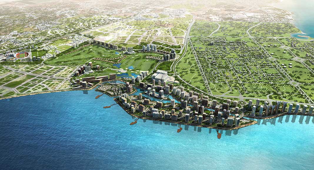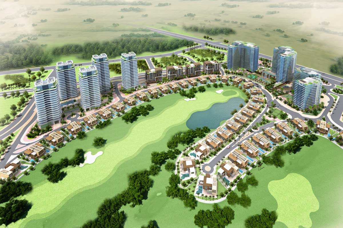 - Un volet touristique composé de six hôtels de très haut standing, un parcours de golf de neuf trous, sur 53 ha, signé par l’architecte Peter Harradine, en partenariat avec The Professional Gulf Association (P.G.A.) – United Kingdom, ainsi qu’un Central Park de 20 ha qui offrira des parcours de santé pédestres et des espaces d’animation et de loisirs.