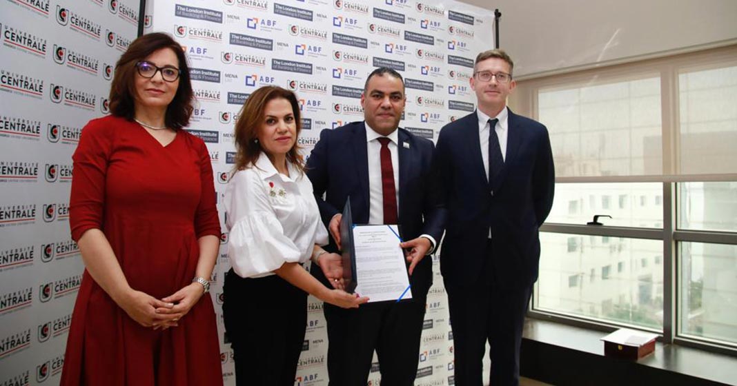 Les leaders du London Institute of Banking & Finance MENA (LIBF MENA), de l’Université Centrale (UC) et de l’Académie des Banques & Finances (ABF) se sont réunis pour assister à la signature d’un protocole d’accord historique lors d’une cérémonie à laquelle participait Mr Matthew Forman, chef de mission adjoint à l’Ambassade britannique en Tunisie. L’accord reconnaît la valeur de l’enseignement financier international accrédité par le Royaume-Uni en Tunisie et ouvre la voie aux partenaires pour offrir de nouvelles opportunités de formation académique et professionnelle dans ce pays d’Afrique du Nord.
