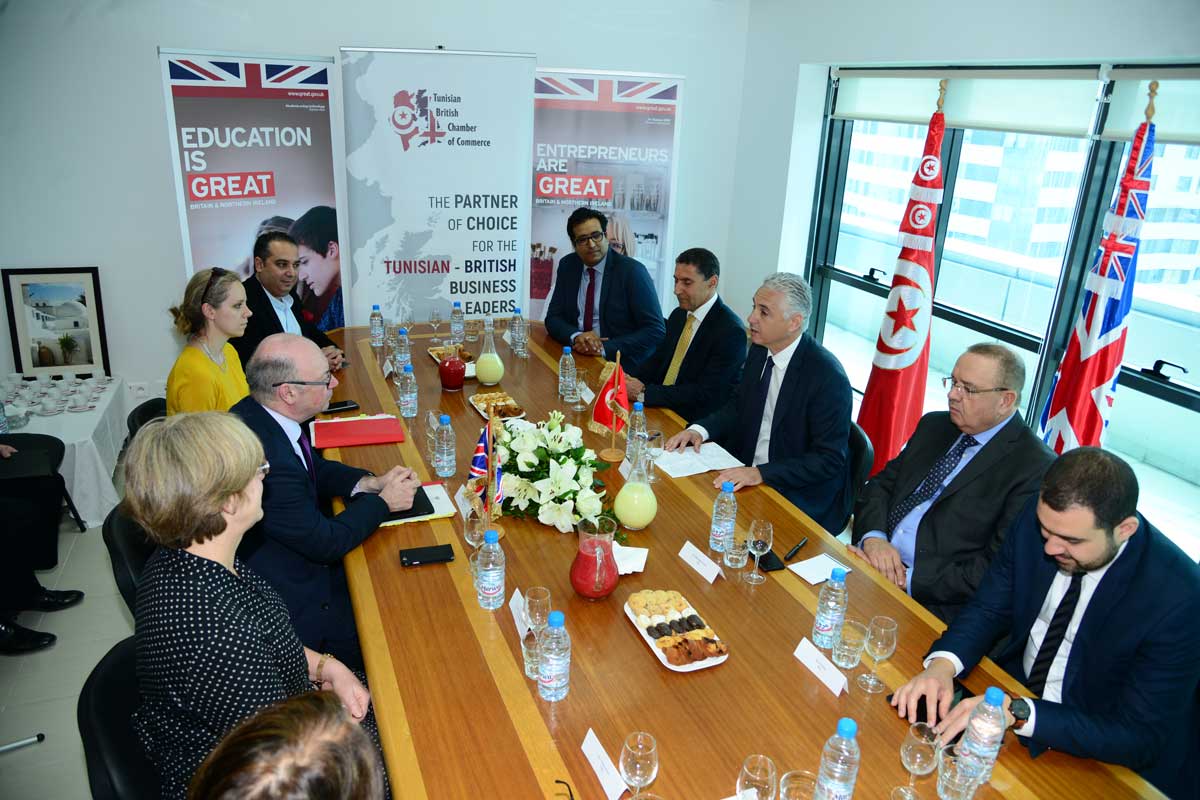 Cette visite, une première pour un Ministre d’Etat Britannique de se rendre dans les locaux de la Chambre de Commerce Tuniso-Britannique, a été l’occasion au cours d’une réunion de travail d’échanger sur les opportunités de développement des relations économiques Tuniso-Britanniques.