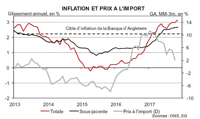 - La politique monétaire resterait accommodante en 2018 mais la Banque d’Angleterre devrait durcir la politique macro-prudentielle afin de ralentir la progression du crédit à la