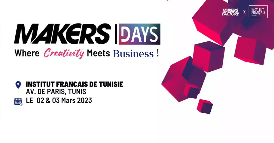 La 1ère édition des “Makers Days” co-organisés par Makers Factory et l’Institut Français de Tunisie (IFT) avec le soutien de l’Ambassade de France en Tunisie et d’Expertise France via son programme Innovi se tiendra les 2 et 3 février à l’IFT. Durant deux jours, les Makers Days donnent RDV aux acteurs de l’ICC, de l’écosystème entrepreneurial, ainsi qu’aux jeunes passionnés de l’art et de la technologie désireux d’embarquer dans les métiers de développement et de création de contenus artistiques et culturels numériques.