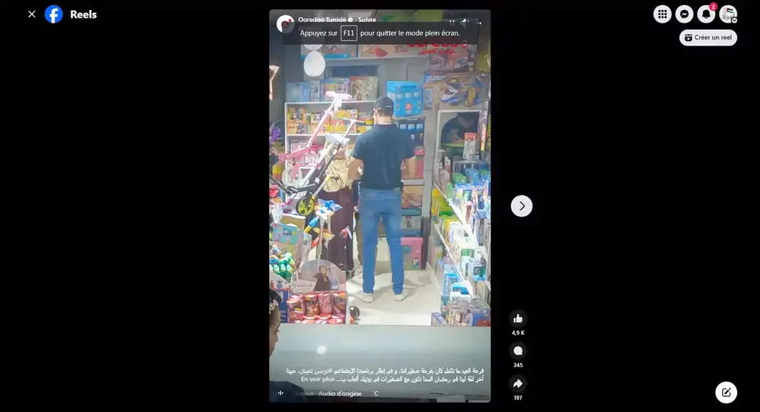 Dans une séquence de quelques minutes publiée sur le compte Facebook de l’opérateur téléphonique, on y voit des collaborateurs de Ooredoo dans un magasin de jouets qui apostrophent des clients venus offrir des présents pour leurs enfants, à l’occasion de l’Aïd.