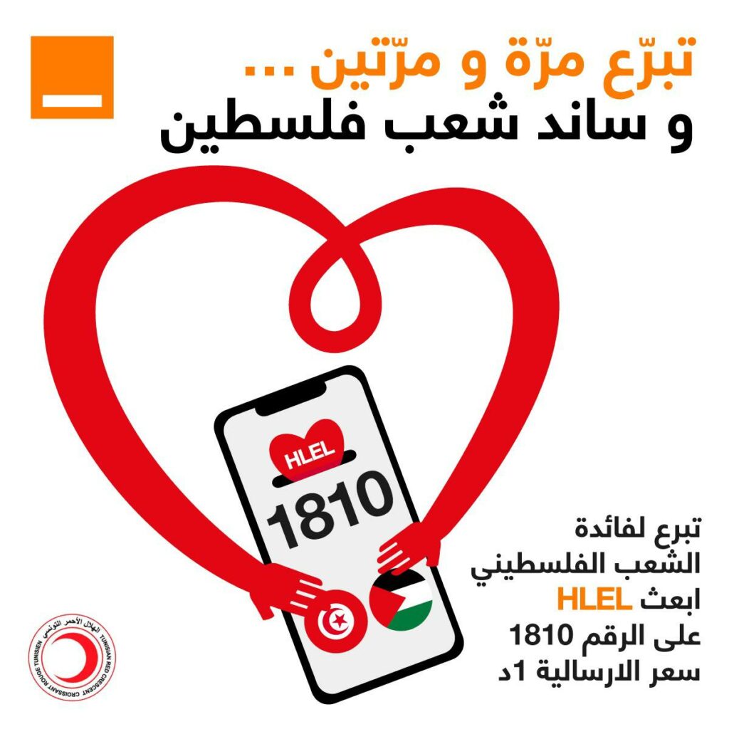 A l’initiative du Croissant Rouge Tunisien, une action de dons en faveur du Peuple Palestinien a été lancée via les réseaux des 3 opérateurs téléphoniques tunisiens : Tunisie Télécom, Orange et Ooredoo.