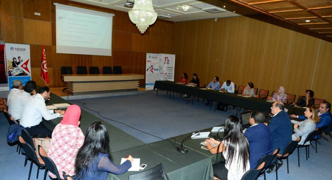 Monsieur Riadh Bezzraga a ouvert la séance et présenté le Fond Tasdir+ aux membres présents, un programme d’appui aux entreprises, financé par la banque mondiale, et d’une valeur de 17 M EURO. Il a pour objectif d’augmenter et diversifier les exportations des produits à haute valeur ajoutée. Le lot 3 de ce programme s’adresse spécialement aux entreprises opérant dans le secteur agro alimentaire, des TIC, l’artisanat, les jeunes entreprises (créées après 31/12/2014) ainsi que les groupements et associations. Les deux modes d’appui qui concerne ce lot sont le mode business plan (business plan export sans implantation et le business plan implantation commerciale à l’étranger) avec un cofinancement de 50% qui peut aller jusqu’à 150.000TND.