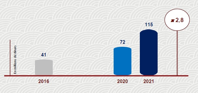 Grâce surtout à l’amélioration du coût de risques net sur créances, le résultat net a affiché un bond de 60% pour se situer à 115,5 MD au terme de l’exercice 2021, équivalent à 2,8 fois celui enregistré il y a 5 ans.