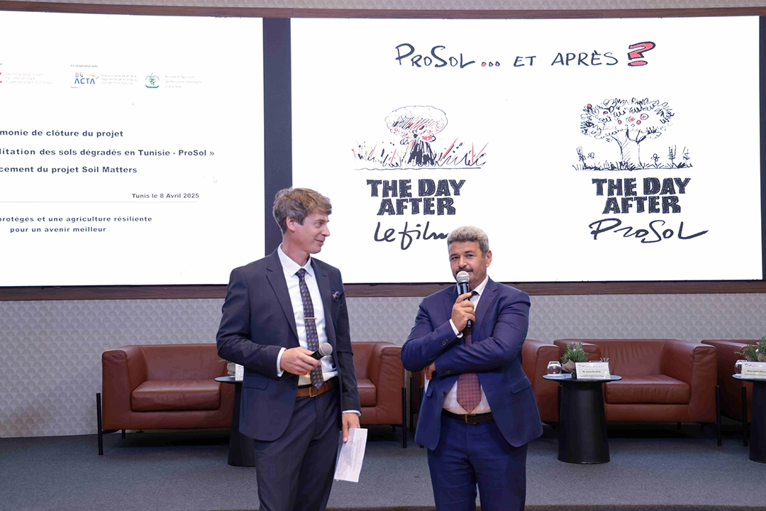 En travaillant en étroite collaboration avec les agriculteurs, les coopératives, les associations et les institutions publiques et privées, le projet ProSol a solidement jeté les bases d’un modèle de gestion intégrée et inclusive des sols en Tunisie. Il constitue aujourd’hui une référence inspirante en matière de coopération internationale pour la promotion de la sécurité alimentaire, le renforcement de la résilience face au changement climatique et l’instauration de la durabilité au cœur des systèmes agricoles tunisiens.