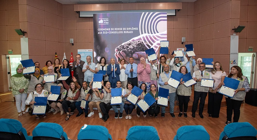 La formation de cette première cohorte d’éco-conseillers, fruit de dix sessions intensives, s’inscrit dans le cadre du projet BioTED. Financé par un accord de conversion de créances entre les gouvernements tunisien et belge, et soutenu par Wallonie-Bruxelles International, ce projet ambitieux est mis en œuvre par la Direction Générale de l’Agriculture Biologique (DGAB) du Ministère de l’Agriculture, des Ressources Hydrauliques et de la Pêche. Le Consortium Belge (Institut Eco-conseil, CANOPEA, et Accueil Champêtre Wallonie) a apporté son expertise technique, essentielle à la réussite de cette initiative. L’événement a d’ailleurs été rehaussé par la présence de personnalités de haut rang, dont Hamadi Habaieb, Secrétaire d’État chargé des Ressources Hydrauliques, ainsi que M. François Dumont, l’ambassadeur du Royaume de Belgique en Tunisie, et Mme Rajae Essefiani, Déléguée Générale de Wallonie-Bruxelles à Tunis, soulignant l’importance de cette coopération internationale.