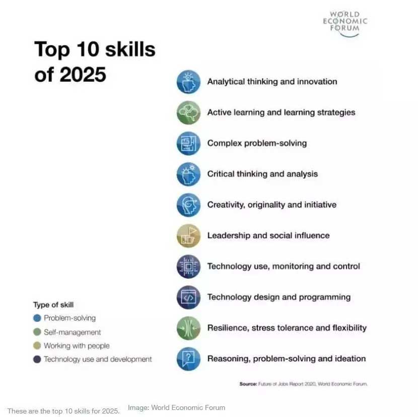 Mais les nouvelles compétences qui émergent cette année sont des compétences en autogestion telles que l’apprentissage actif, la résilience, la tolérance au stress et la flexibilité.