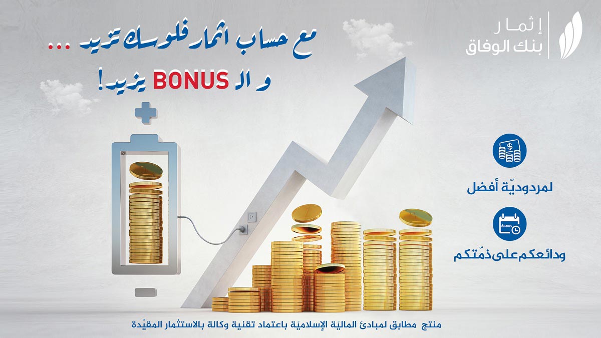 HISSAB ITHMAR, permet aux clients de bénéficier d’un BONUS proportionnel à la stabilité des dépôts. HISSAB ITHMAR est la solution pour une meilleure rémunération !