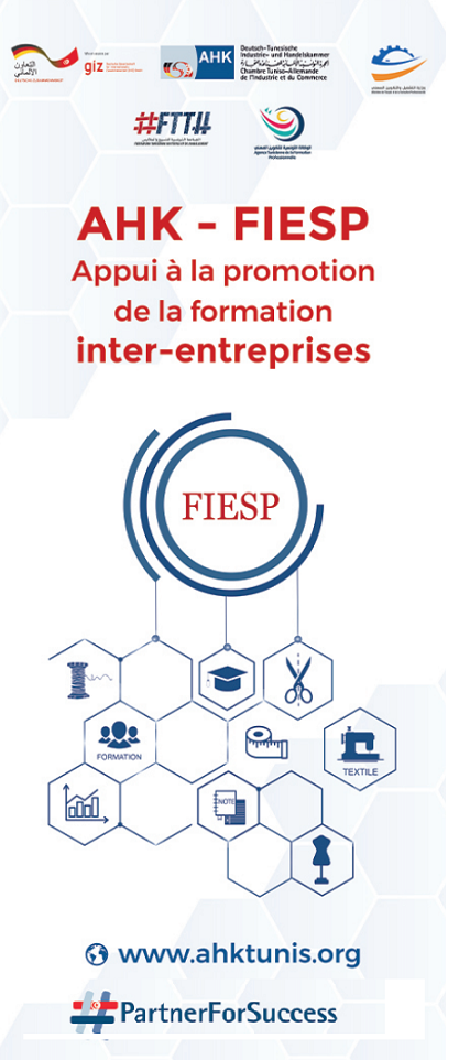 Dans le cadre de la Composante II du projet FIESP (Formation inter entreprise avec le secteur privé) du Ministère fédéral de la coopération économique et du développement (BMZ) mis en œuvre par la GIZ Tunisie (2019 – Juillet 2023) et porté par la Chambre Tuniso-Allemande de l’Industrie et du Commerce (AHK) intitulée « Appui à la mise en place de centres de formation interentreprises », le projet AHK – FIESP accompagne 120 jeunes apprenants dans l’univers du textile à travers un cursus de formation professionnelle dans le secteur du textile de Septembre 2021 au 30 Juin 2023, et ce, en collaboration avec les centres de formation professionnel de de l’Agence Tunisienne de la Formation Professionnelle (ATFP).