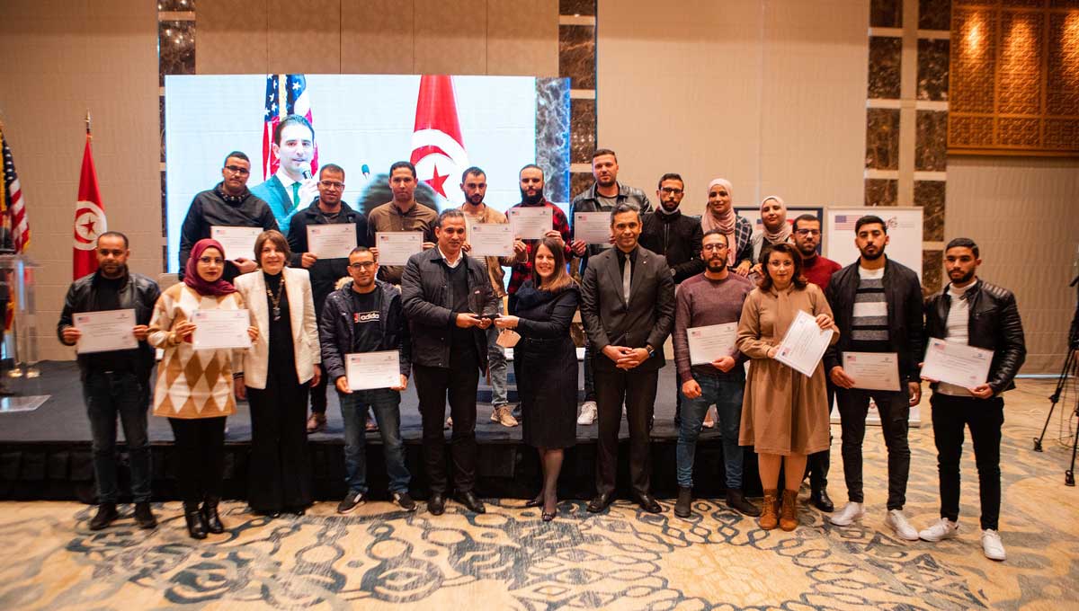 L’ambassade des États-Unis et la Fondation Tunisie Education For Employment (EFE) ont organisé une cérémonie de remise des diplômes le 30 mars à Tunis pour 250 jeunes nouvellement employés qui ont terminé le programme « Soutenir la création d’emplois pour les jeunes Tunisiens issus de communautés marginalisées ». La cérémonie s’est déroulée en présence de S.E.M. Nasreddine Nsibi , Ministre de l’Emploi et de la Formation professionnelle et de Madame Natasha S. Franceschi, cheffe de mission adjointe de l’Ambassade des États-Unis Tunis.