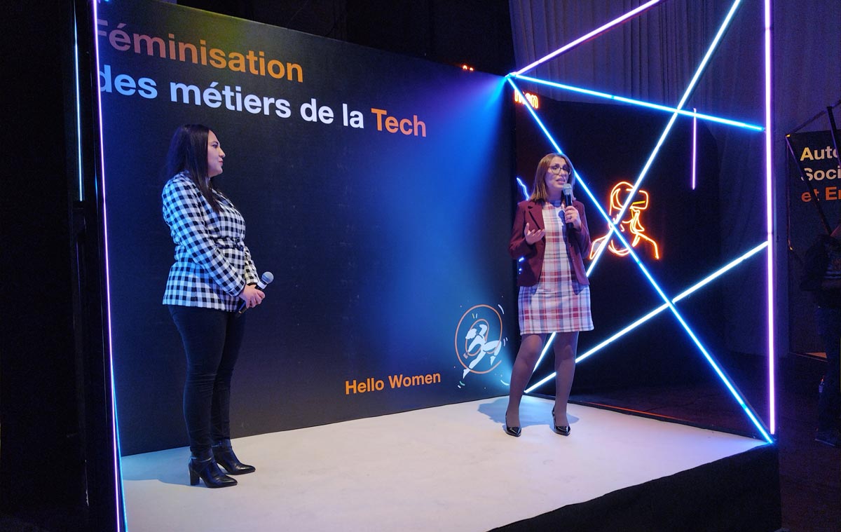 La soirée Hello Women a présenté les principales initiatives réalisées par le groupe Orange ainsi que les témoignages des bénéficiaires, avec une scénographie et une mise en scène savamment orchestrées pour mettre en lumière des sujets importants tels que la féminisation des métiers de la tech, l’automatisation socio-économique et entrepreneurial féminin, et les principes Weps.