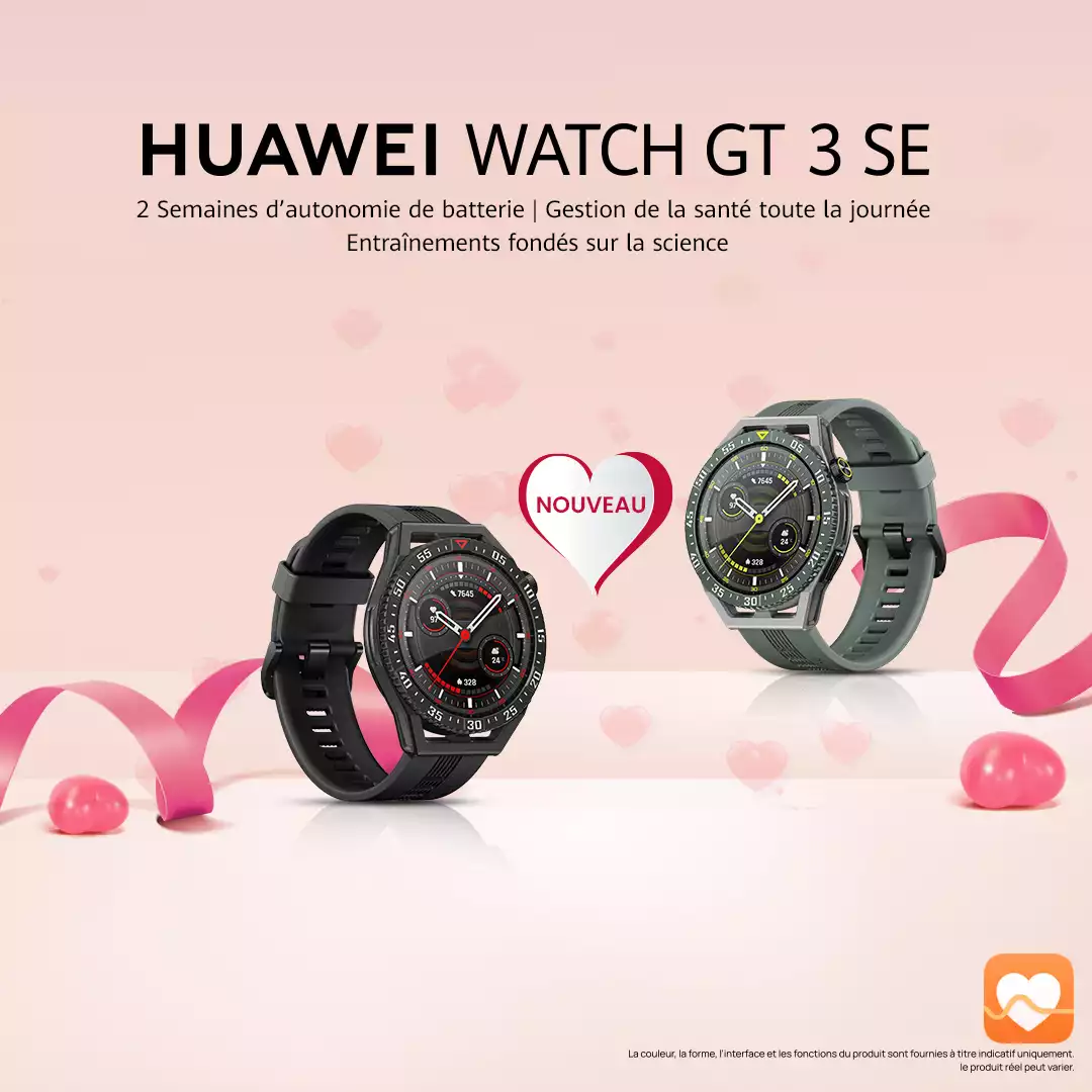 Etant une smartwatch d’entrée de gamme à la pointe de la technologie, la HUAWEI WATCH GT 3 SE répond aux besoins d’utilisateurs urbains, des amateurs de sport et de fitness et des personnes soucieuses de leur santé. La HUAWEI WATCH GT 3 SE répond aux attentes des utilisateurs et leur permet de voyager en toute légèreté pour profiter de la nature environnante grâce à son design léger. La HUAWEI WATCH GT 3 SE offre une grande autonomie pour une utilisation prolongée, permettant 2 semaines d’utilisation continue avant la recharge. En même temps, il prend en charge la charge rapide, permettant une utilisation d’une journée entière avec seulement 5 minutes de charge.