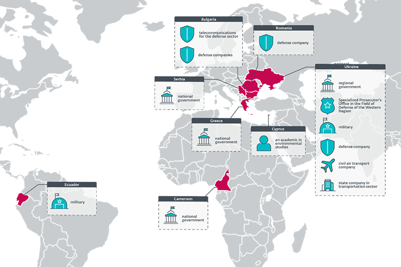 L’analyse d’ESET révèle que les cibles principales de RoundPress sont des entités critiques directement ou indirectement liées au conflit ukrainien. Il s’agit notamment d’institutions gouvernementales ukrainiennes, mais aussi d’entreprises d’armement basées en Bulgarie et en Roumanie, particulièrement celles impliquées dans la fourniture d’équipements militaires de conception soviétique à l’Ukraine. La portée de l’attaque ne s’arrête pas là, puisque des entités gouvernementales en Afrique, en Europe et en Amérique du Sud ont également été visées, soulignant l’ambition et la portée géographique de cette campagne d’espionnage.