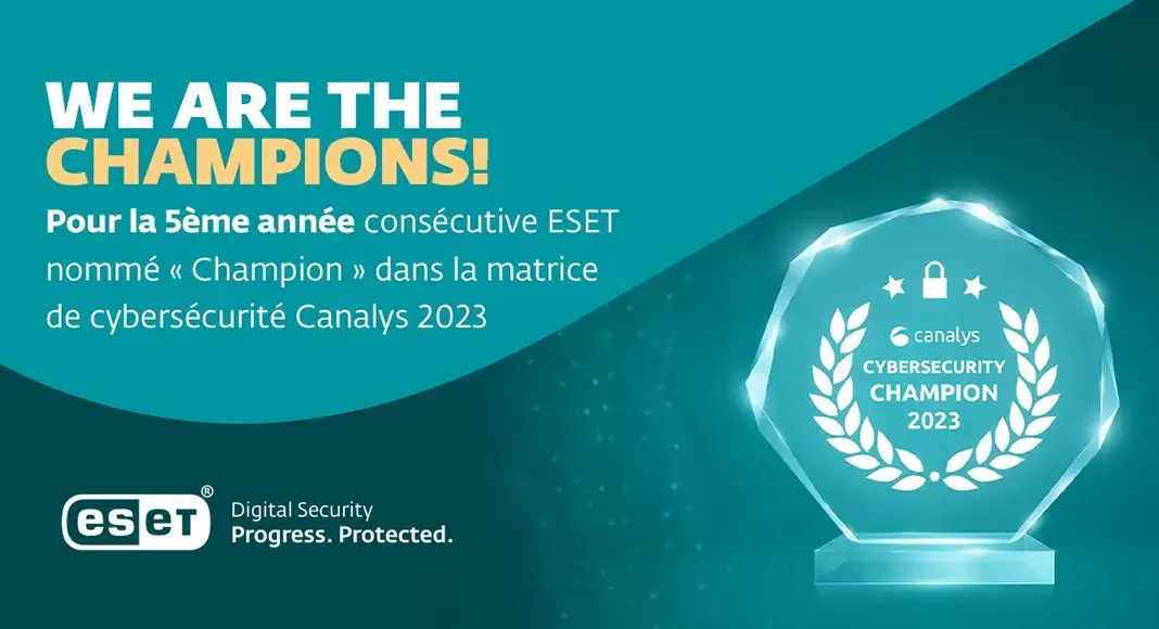 ESET, leader mondial en cybersécurité, maintient son statut de « Champion » pour la cinquième année consécutive dans la dernière édition de la Matrice intitulée « Leadership en Cybersécurité » de Canalys. Ce cabinet d’analyses de marché technologique de premier plan évalue les principaux fournisseurs de cybersécurité et leurs programmes partenaires.