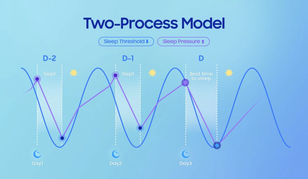 Pour améliorer votre sommeil, la montre s’appuie sur le modèle à deux processus de régulation du sommeil. En suivant votre rythme circadien et votre pression de sommeil pendant trois jours, elle interprète ces données pour calculer l’heure de coucher optimale afin que vous vous réveilliez en pleine forme. Cet algorithme, développé par le KAIST et testé cliniquement au Samsung Medical Center, utilise les besoins individuels en sommeil pour fournir des conseils personnalisés.