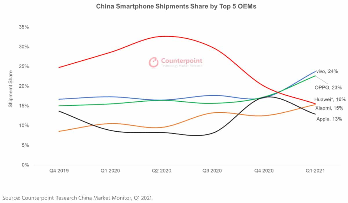 Le dirigeant de la société a expliqué que Huawei avait perdu sa part de marché dans le segment haut de gamme en Chine au profit d’Apple. Comme-si cela ne suffisait pas, Huawei a même perdu une part de marché dans le segment moyen en Chine, face à ses rivaux nationaux, notamment Oppo, Vivo et Xiaomi.